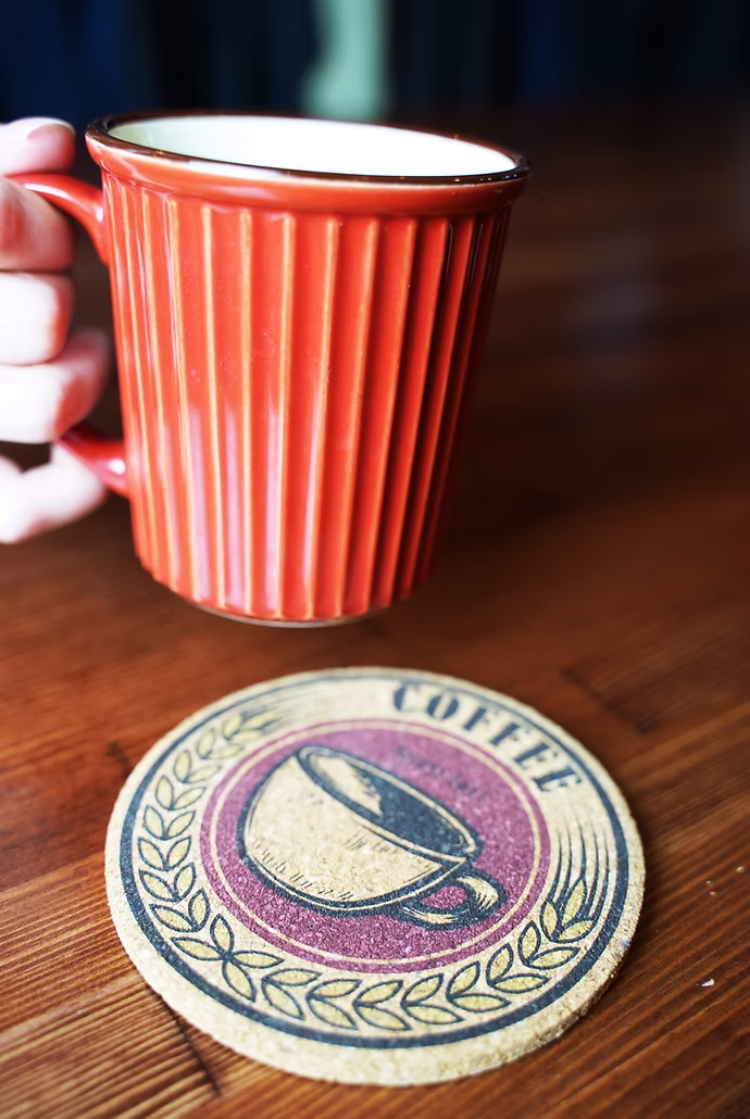 コルクコースターはインクが染みこむタイプのプリント方法の為、コルクのもつ温かい質感が損なわれることなく、お使いいただけます。白インクが使用できない為、プリントの際デザインの白部分は素材色となります。